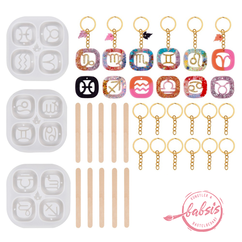 Sternzeichen-Schlüsselanhänger Set Silikongießformen mit Schlüsselringen und Holzstäbchen