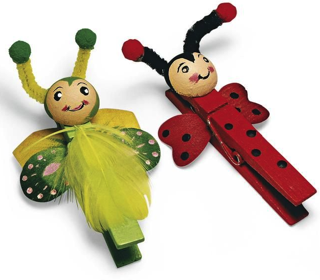 Wenn die Klammern bemalt und beklebt werden, kann lustige Dekoration daraus werden.